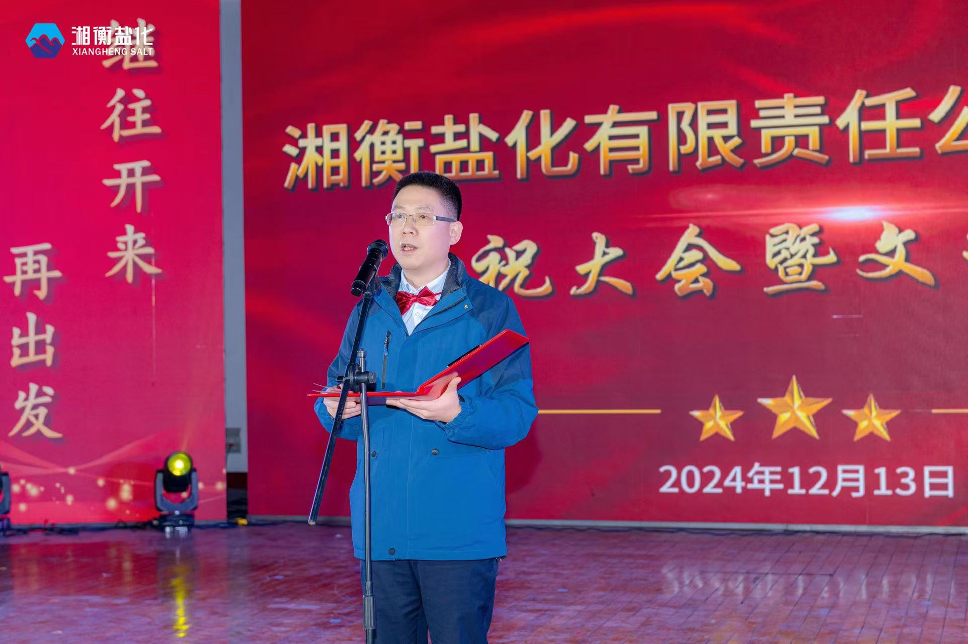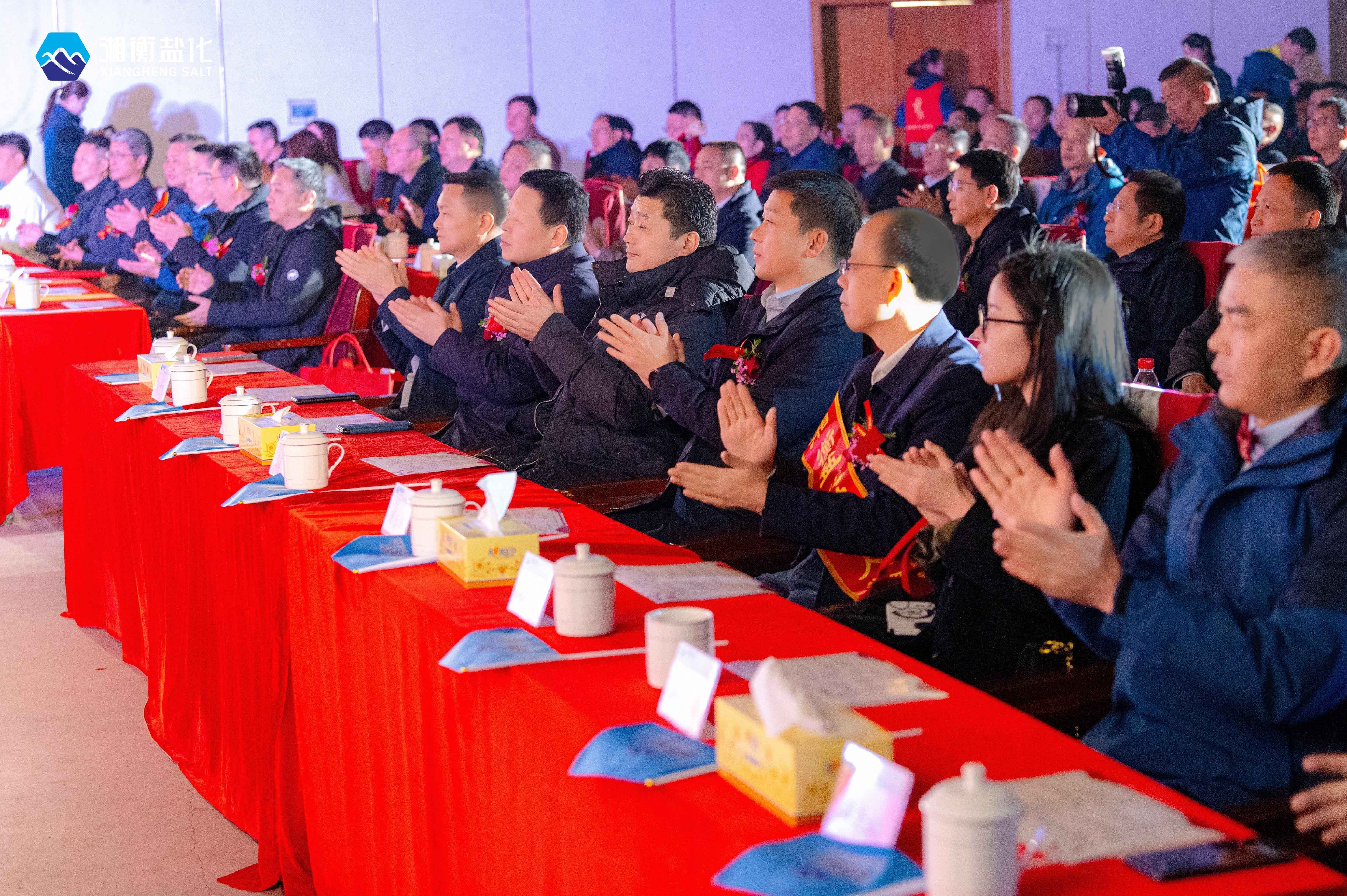 公司董事长致辞会上,公司党委书记、执行董事唐虎致辞。他谈到,55年来,在湘衡人的团结奋斗、守正创新下,湘衡实现了从小到大、由弱到强的巨大变化,完成了从艰难到成功、由粗放到精益的深刻蜕变。五十五载光辉岁月,湘衡盐化艰苦创业、踔厉奋发。五十五年间,湘衡人抓生产、强管理、提效益,建设成了今天资产19亿、年产270万吨,集规模、工艺和技术水平均居同行业前列的现代化大型井矿盐制盐基地。五十五载光辉岁月,湘衡盐化突出创新、积极进取。公司坚持“创新为源”,持续提升技术装备水平和科技研发能力,多项技术行业首创或首次引进。迄今,共取得自主知识产权发明专利29项、实用新型专利191项,被评为湖南省高新技术企业,荣获“‘十三五’盐行业科技创新先进集体”等科技创新荣誉。五十五载光辉岁月,湘衡盐化精益求精、追求卓越。公司建立健全质量、食品、能源、环境和职业健康安全等六大体系,荣获国家级绿色工厂、首届轻工业博览会银奖等多项国家级、行业级、省市级荣誉,连续7年利润过亿,成绩斐然。五十五载光辉岁月,湘衡盐化以人为本、共创和谐。公司纵深推进三项制度改革,构建员工职业发展“三通道”,激励员工岗位成才、建功立业,密切关注群众需求,推行民主管理,开展多项员工文娱活动,打造争先创优良好氛围。