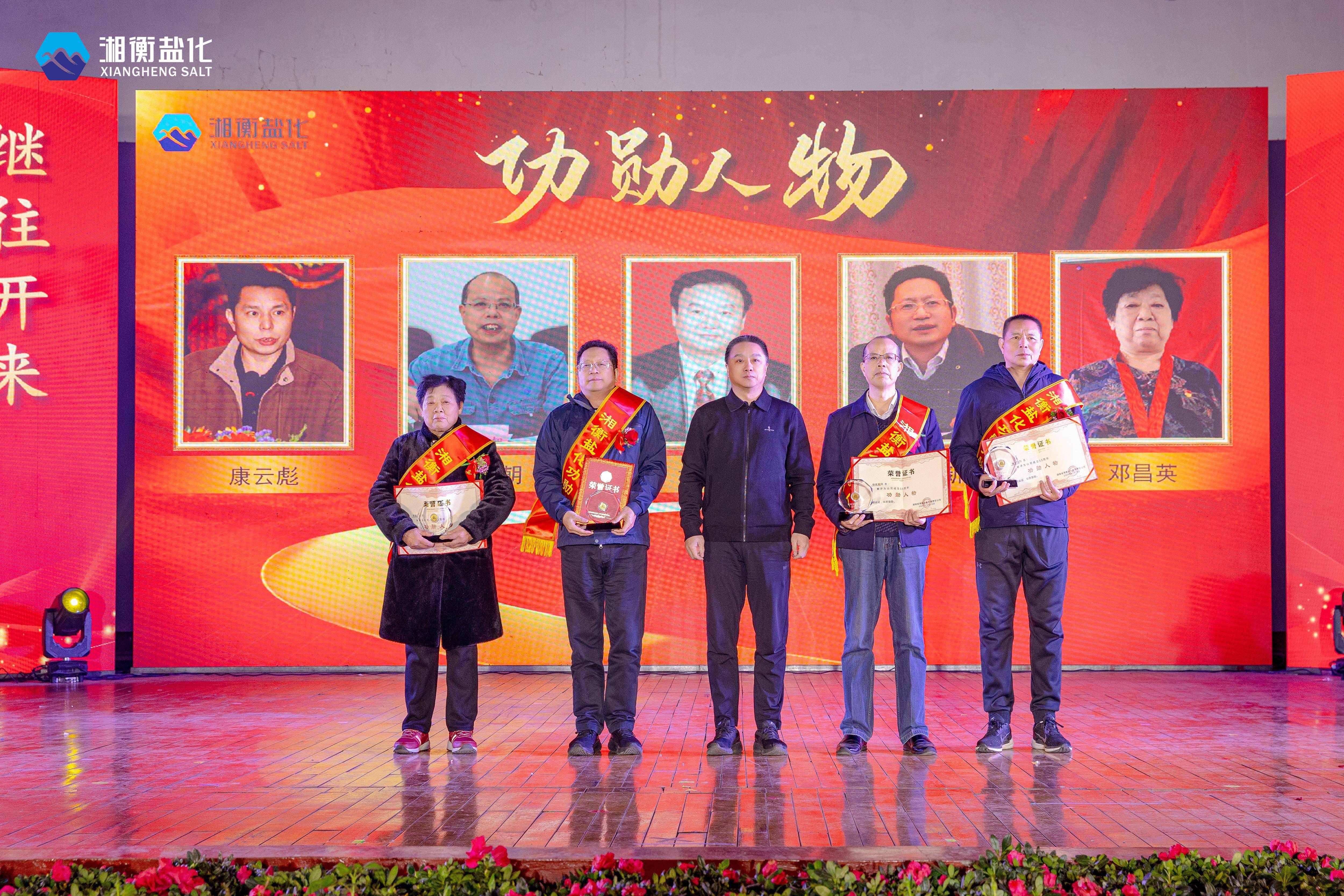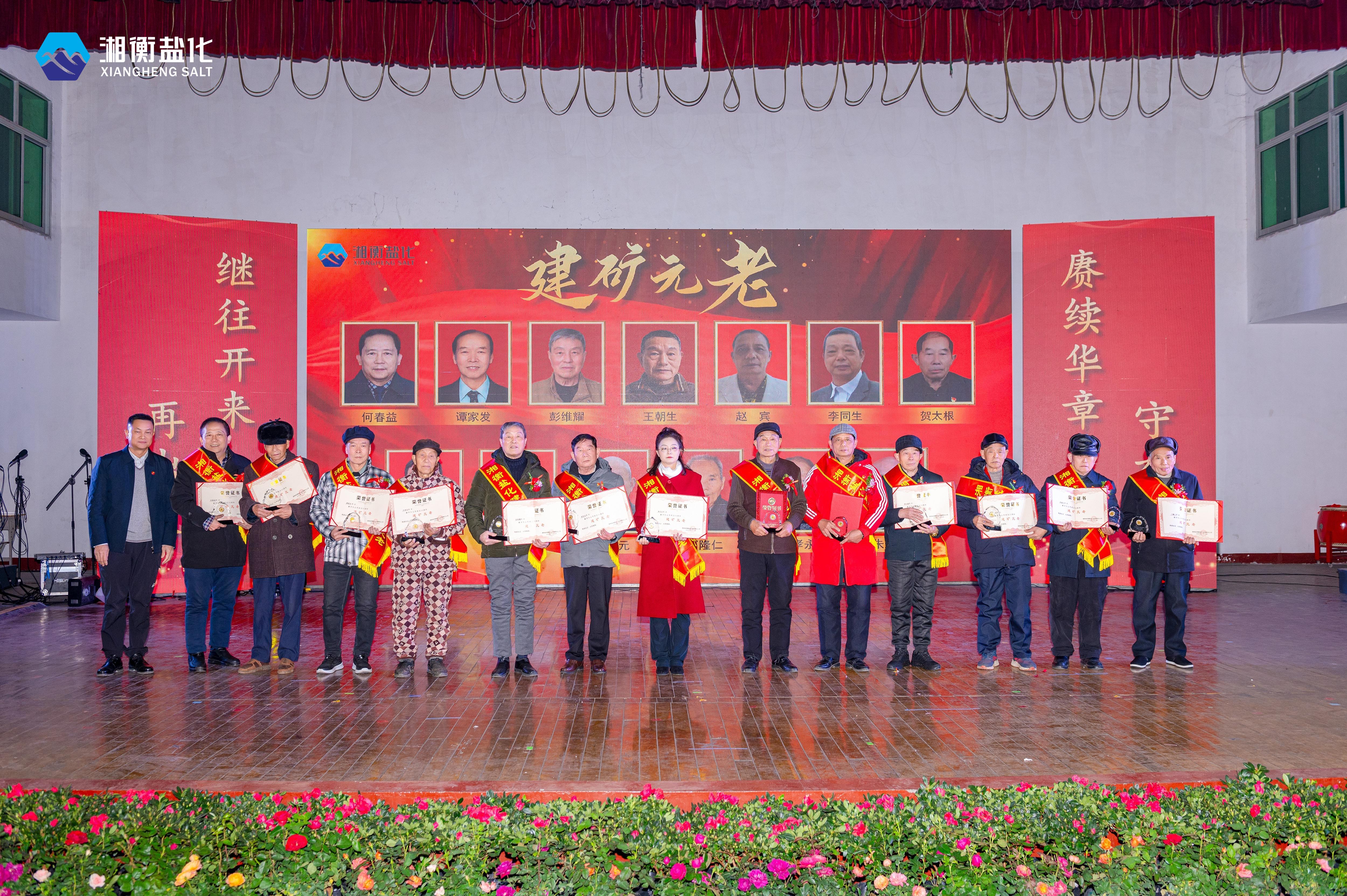 大会在“不忘初心”“薪火相传”“继往开来”三个篇章中,分别进行了隆重的表彰仪式。李志勇为何春益、谭家发、彭维耀、王朝生、赵宾、李同生、贺太根、贺阳生、刘文明、余益元、丁隆仁、刘孝永、朱宏顺等13位“建矿元老”颁奖,魏中发、唐虎为欧玲玲、邓群林、陈蛟龙、杨建、刘卫红、周涛、张慧、曹健飚、郑洪涛、左山花等10位“岗位标兵”颁奖,马天毅为康云彪、徐有朝、杨汉清、陈新、邓昌英等5位“功勋人物”颁奖。原湘衡盐矿党委委员、矿长康云彪作表彰发言,他在发言中回顾了公司的发展历史,叙述了在公司的生活、工作经历及感受,对于公司的发展给予了高度评价,衷心表达了对于公司美好未来的祝福。