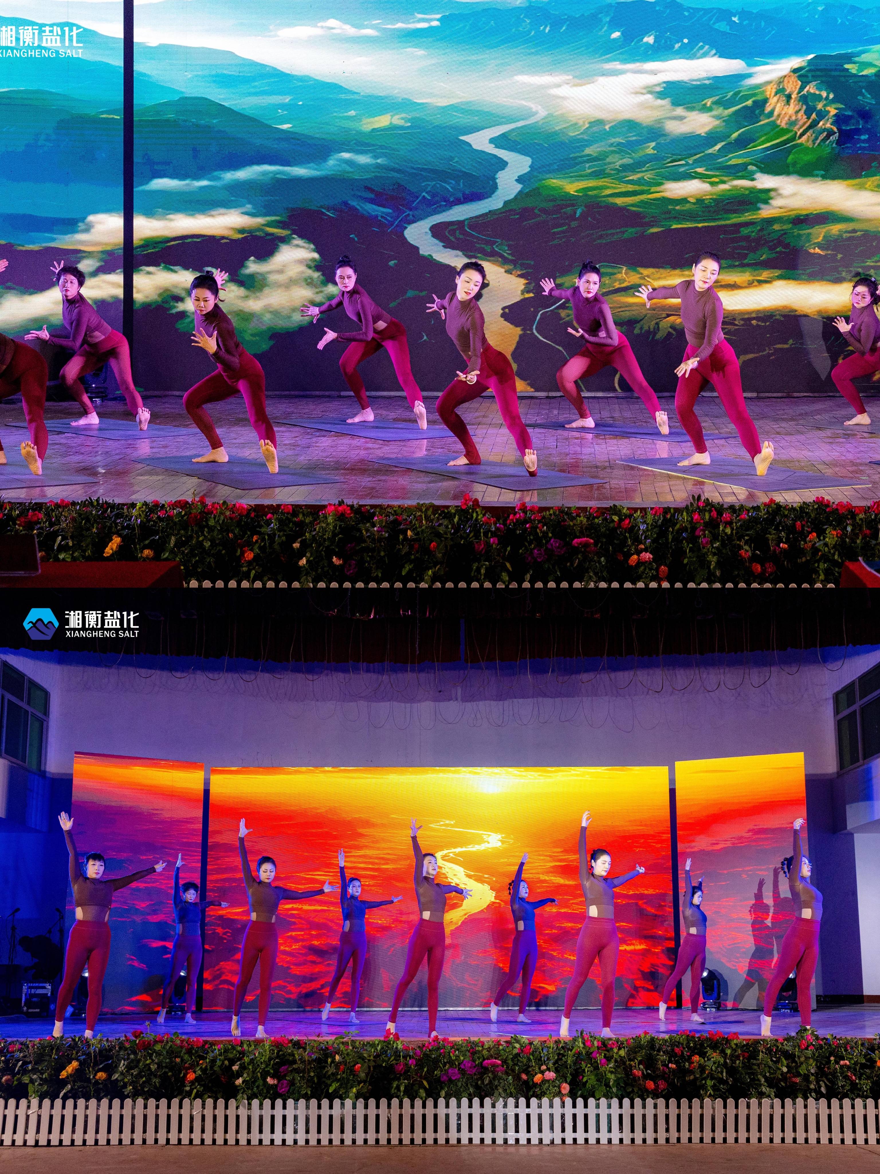 会上集中观看了《生生不息 薪火相传》员工笑脸视频和《湘衡,我想对你说》员工告白视频以及8个员工文艺演出节目。员工文艺演出在气势恢宏、震撼有力的开场舞《威风锣鼓》中拉开了序幕。温馨又昂扬的歌曲联唱《小美满》《同桌的你》《不忘初心》唱出了公司55年间收获的满满的成就与喜悦,也表达了公司员工怀揣美好、携手共进的心愿;服装产品秀《“盐”值有你》中,同事们身着工装,英姿飒爽,让大家直观感受到了公司历年来工装、产品的更替,也见证了每一款产品背后凝聚的智慧与创新;瑜伽表演《高飞》以优雅婀娜的动作,展现了湘衡人勇往直前、永不言败的精神,抒发了员工对公司发展的美好期待与向往;古典舞情景剧《穿越之旅》表达了我们将更加团结努力,共同创造属于湘衡人的美好生活,共同建设如大唐般繁荣的湘衡事业的决心;青春活力的现代舞《快乐崇拜》跳出了湘衡人的积极向上的精气神,展现了青春的快乐与活力;歌舞演出《花开新时代》不仅仅展现了公司的美好的愿望,更是员工对公司繁花似锦、锦绣前程的颂歌;一首高亢嘹亮、激情高昂的大合唱《走向复兴》将现场气氛推向最高潮,一表公司将携手并进、共铸辉煌的决心和斗志。大会在全体人员对美好未来的祝愿《二十年后再相会》中落下帷幕!
